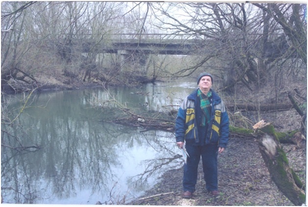 Инженер Надуткин В.А. у своего 40-летнего моста через Цон в пос. Ясная Поляна