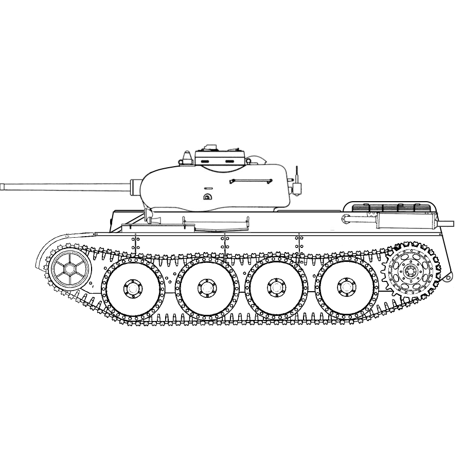 - Бронирование — Башня от 30 до 55 мм; Лоб 30мм/60°;Верхняя часть борта 13мм/30°, нижняя 13+4 мм; Корма, крыша и днище 10 мм.