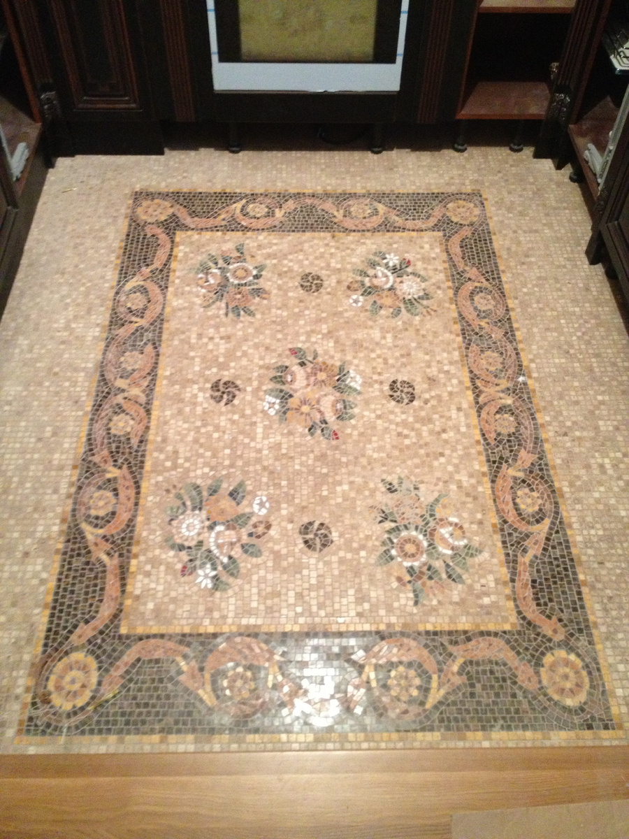 Мозаичное напольное панно из каменной мозаики: искусство, воплощенное в камне.