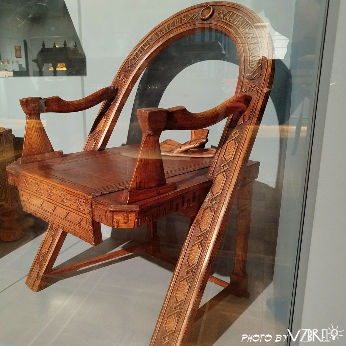 Тренд на перепридумывание русского стиля приходит к нам далеко не в первый раз, этому даже есть разные версии-объяснения, но сейчас не об этом. Так, в 1870 году на Всероссийской мануфактурной выставке в Петербурге было представлено ироничное кресло столярной мастерской Василия Петровича Шутова (*в некоторых источниках указывается, что мастера звали Владимир Анатольевич - кто знает, как правильно?) То ли в шутку, то ли, как сейчас бы сказали: "в маркетинговых целях" (ведь к выставкам мастера часто придумывают что-нибудь эдакое, помимо основного ассортимента, дабы выделяться среди десятков конкурентов), автор собрал простые и узнаваемые предметы, используемые в быту: дуга от упряжи, рукавицы и топоры, и сконструировал их этого кресло. Вряд ли кто-то мог предположить, что подобной мебелью захотят обставлять свои интерьеры, однако... кресло так понравилось высокопоставленной публике, что кроме бронзовой медали, мастерская получила заказ на изготовление более 50 копий изделия, и привилегию