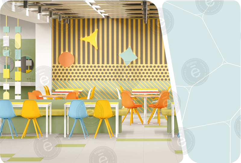 - Комфорт для учеников: дети проводят в столовой значительное время, поэтому важно, чтобы мебель способствовала расслаблению и удобству.