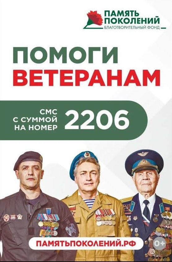 Всероссийский Благотворительный фонд «Память поколений» создан в 2015 году при участии общественных организаций «Российский Союз ветеранов Афганистана», «Поисковое движение России», «БОЕВОЕ БРАТСТВО», «Союз десантников России», «Российский Союз ветеранов». Фонд оказывает медицинскую помощь ветеранам Великой Отечественной войны и других боевых действий. За 8 лет более 19 тысяч ветеранов по всей стране получили необходимую поддержку: современные протезы, слуховые аппараты, высокотехнологичные коляски, комплекты медикаментов, а также возможность пройти лечение и реабилитацию в профильных медицинских учреждениях. Фонд помогает не только адресно (то есть конкретным подопечным), но и работает над улучшением системы оказания медицинских услуг ветеранам в целом, оказывая благотворительную помощь госпиталям ветеранов войн и профильным социальным учреждениям. Также Фондом реализуются проекты «Акция «Красная гвоздика», «Герои России, какими их не видел никто», «Молоды душой», «Ветераны.РФ», «Моло