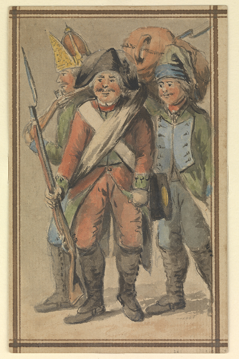 Для сегодняшнего материала я собрал несколько рисунков, изображающих русских (иногда – под вопросом) военнослужащих и сделанных иностранными авторами во второй половине XVIII-первой половине XIX в. При этом я в данном случае избегал многочисленных рисунков И.А. Кляйна, запечатлевших русскую армию в ходе заграничных походов 1813-14 гг. и других известных и часто воспроизводимых работ. Целью было собрать менее «затасканные» изображения. Так же, как и более известные произведения, эти рисунки интересны не только тем, что представляют «взгляд со стороны» на российских подданных, но и как исторический источник. Первые три рисунка относятся к так называемому «альбому Брэя». Их автор - английский морской офицер Гэбриэл Брэй, известно в частности, что в 1774-77 гг. он служил вторым лейтенантом на фрегате «Паллас». В ходе плаваний он делал любительские зарисовки. Уже в XIX в. его рисунки оказались собраны в альбом (точнее – два), которые хранятся ныне в Национальном морском музее в Гринвиче. На