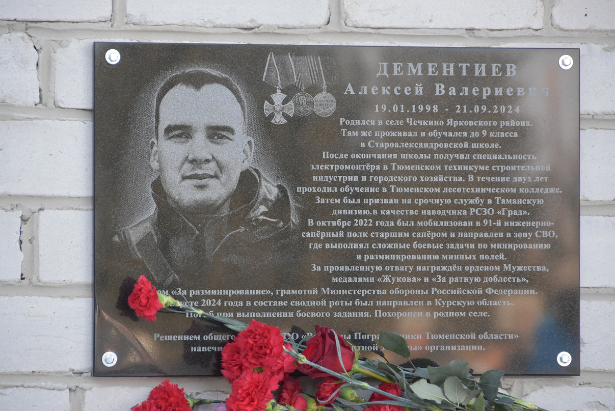 8 марта состоялось открытие мемориальной доски в честь Алексея Валерьевича Дементиева на здании Староалександровской средней школы... На митинге в честь этого события было сказано много тёплых слов. Алёша, именно так его называют родные, близкие, односельчане, остался в памяти как добрый, отзывчивый, всеми любимый молодой человек. Ему жить и жить, но коварная мина оборвала всё... Алексей был сапёром, в составе 91-го инженерно-сапёрного полка разминировал Мариуполь, после освобождения города российскими войсками от укронацистов, потом было Селидово и другие города и селения Донбасса. Погиб он на курской земле, рота из его полка ликвидировала оставленные ВСУ «подарки». Как сказал на митинге глава района Евгений Золотухин, хоть его и мобилизовали в октябре 22-го, но на специальной военной операции был он не по принуждению, по зову сердца. Председатель правления общественной организации «Ветераны Пограничники Тюменской области» Нуртдин Ибрагимов сказал, что при доставки гуманитарной по