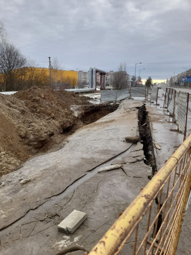 Обрыв образовался на пути к ТЦ “Коллаж”, стало известно Logos44.ru. На улице Индустриальной произошло проседание грунта на тротуаре. На этом участке устраняли дефекты на сети технического водопровода. На днях пешеходная зона начала разрушаться. “В феврале силами ПАО «ТГК-2» выполнялись работы по устранению дефектов на сети технического водопровода. В настоящее время работы завершены. На месте производства земляных работ установлены ограждения. В связи с большой глубиной пролегания водопровода обратную засыпку необходимо выполнять с применением песка. Данные работы по восстановлению места запланированы после поставки материала — в срок до 13 марта”, — сообщили в мэрии.