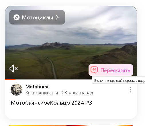 С недавних пор Студия Дзена у меня перестала работать в хроме. А вот на свежепоставленном ЯндексБраузере Студия работает на отлично. И вот, пролистывая Дзен в ЯБраузере, наткнулся на свой собственный вчерашний ролик о мотопутешествии. И тут ЯБраузер предложил пересказать содержание ролика: кратко или подробно. Подробный пересказ ниже. Напишите в комментариях как он вам ? Соответствует ролику по Вашему мнению или нет ? МотоСаянскоеКольцо 2024 #3 00:04 Кызыл и Тыва • Кызыл - столица Республики Тыва, известной также как Тува. • Тыва граничит с Монголией и вошла в состав РСФСР в 1944 году. • Кызыл был основан в 1914 году и назван в честь красного цвета. 01:00 Особенности Кызыла • Кызыл является самым бедным регионом России и одним из самых криминогенных. • В городе действует строгий запрет на продажу алкоголя с 11 утра до 3 часов дня. • Кызыл находится в географическом центре Азии и имеет множество буддийских достопримечательностей. 04:42 Байк-пост "Кочевники Азии" • Байк-пост приютил пять