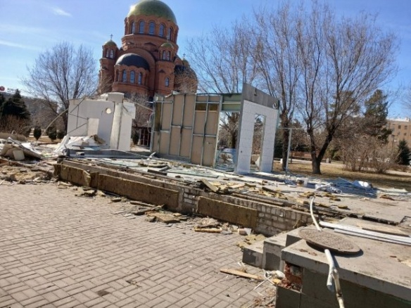 Недалеко от собора Александра Невского подходит к концу демонтаж бывшего магазина. В Центральном районена улице Гоголя, 5сносят нестационарный торговый объект. Как сообщает «Волгоградская правда.ру», в 2023 году павильон был признан некапитальным сооружением, не включенным в действующую схему размещения НТО.Тогда и было принято решение о его сносе. Поскольку собственник строения не освободил территорию самостоятельно, этим занялись власти.Однакоработы были приостановлены из-за ареста павильона –у хозяина магазина имелисьдолги. На демонтаж конструкции ушло более 2 недель.На данном этапе от бывшего магазинаостались основание и строительный мусор. Юлия Фельдман. © Фото: ИД «Волгоградская правда» / Александр Герасимов