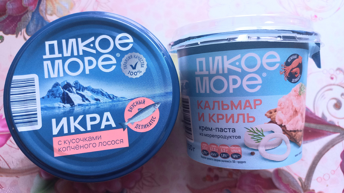 "На праздник обязательно побалую себя морепродуктами: куплю бычки в томате и морскую капусту!"😁 Здравствуйте, мои дорогие ❤️ Предлагаю сегодня побаловать себя икрой минтая с кусочками копчёного лосося и крем-пастой из морепродуктов (кальмар и криль). Заодно узнаем происхождение этих деликатесов, то есть откуда они попадают на полки в "Чижике". Отзыв основан на моём личном мнении, это не является рекламой, так как ни с кем не сотрудничаю, и всё купила в магазине за свои деньги. Паста Дикое море с антарктическим крилем и кальмаром, 150 грамм, цена - 89 рублей. Я покупала со скидкой 20%, в тот день это был товар дня, поэтому для меня цена была 71,20 рублей. Это совсем недорого. Почитаем состав: 1) растительное масло, 2) рыбная продукция варёная, 3) мясо антарктического криля, 4) мясо кальмара (у нас на крышке была напечатана буква Б, что означает кальмар командорский), 5) вода питьевая, а также сахар, крахмал картофельный, яичный желток, ароматизаторы и красители. Дальше на этикетке ище