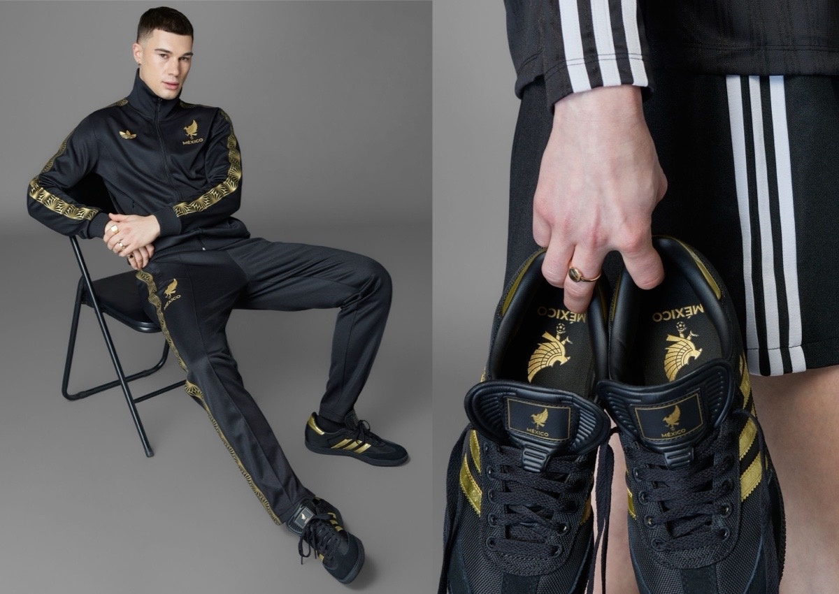 Adidas укрепляет свою связь с национальной сборной Мексики, представляя специальную версию кроссовок Samba «Mexico», вдохновленную комплектом формы для Золотого кубка 2025 года. Эта эксклюзивная модель, выполненная в классическом черном цвете с золотыми акцентами, полностью соответствует предстоящему черно-золотому униформе команды и черпает культурные влияния из традиционного одеяния мариачи. Samba «Mexico» отличается текстильным верхом, замшевым носком в форме буквы «Т» и золотыми лакированными тремя полосками, украшенными тиснением в стиле мариачи. Вместо привычного логотипа «Samba» на боковой панели кроссовка гордо emblazoned надпись «México». Дополнительные элементы, вызывающие гордость за страну, включают золотой герб с орлом на язычке и стельке. adidas Samba “Mexico”