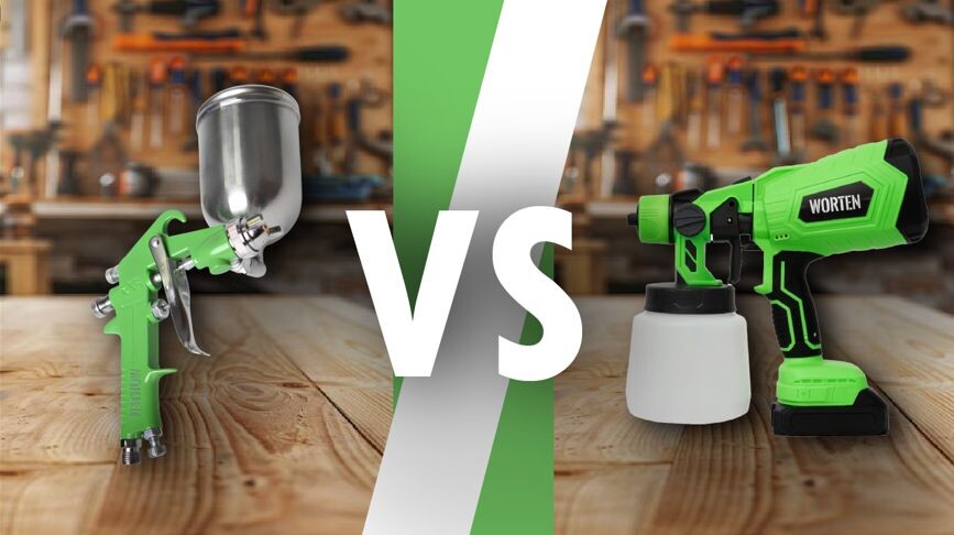 Выбор краскопульта - важный этап при проведении покрасочных работ. Сегодня сравним две модели от бренда WORTEN: пневматический с верхним бачком 0,4л и аккумуляторный с емкостью бачка 0,8л. Обе модели обладают своими преимуществами и недостатками, и выбор зависит от ваших конкретных потребностей и условий работы.