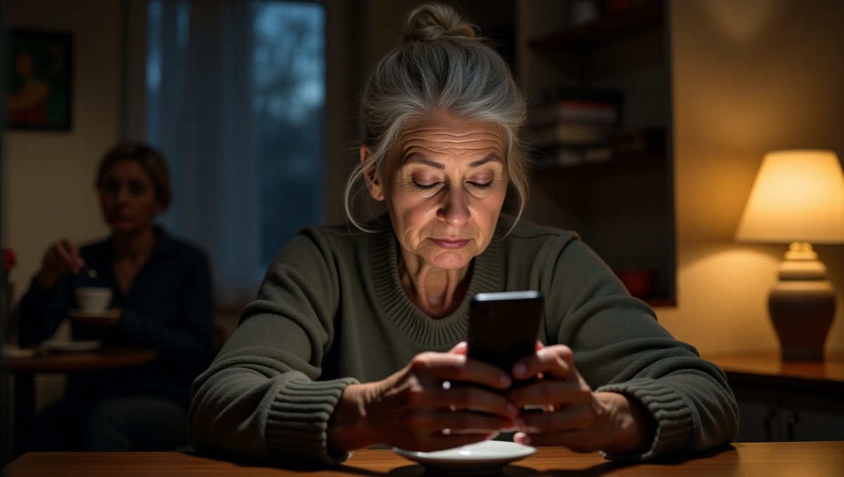 Лицо у неё было сосредоточенное, губы плотно сжаты, а пальцы постукивали по деревянной поверхности стола.