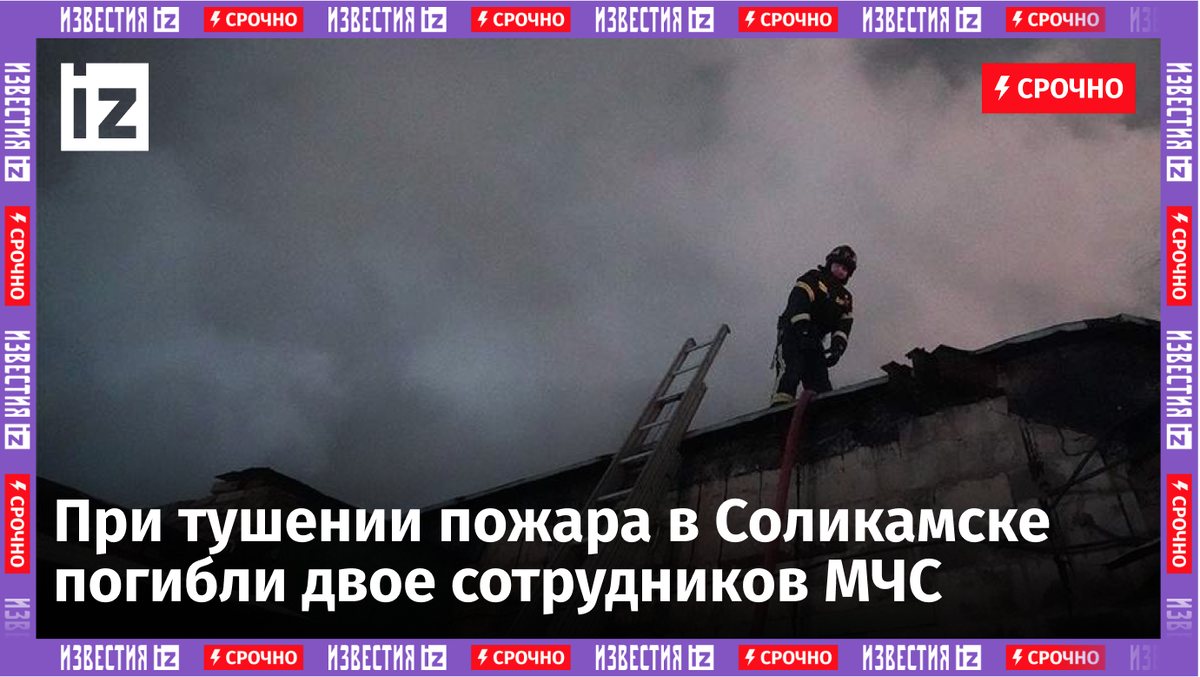 Два сотрудника МЧС погибли во время тушения пожара в одноэтажном жилом здании в Соликамске Пермского края. Об этом сообщили в пресс-службе ведомства. «Произошло обрушение кровли, огнеборцы МЧС России оказались под завалами», — указано в Telegram-канале ведомства. Ранее в этот день сообщалось о возгорании жилого здания на площади 900 кв. м. Здание выполнено из дерева. Ведомство уточнило, что на месте тушения пожара работают 40 специалистов и 19 единиц техники.