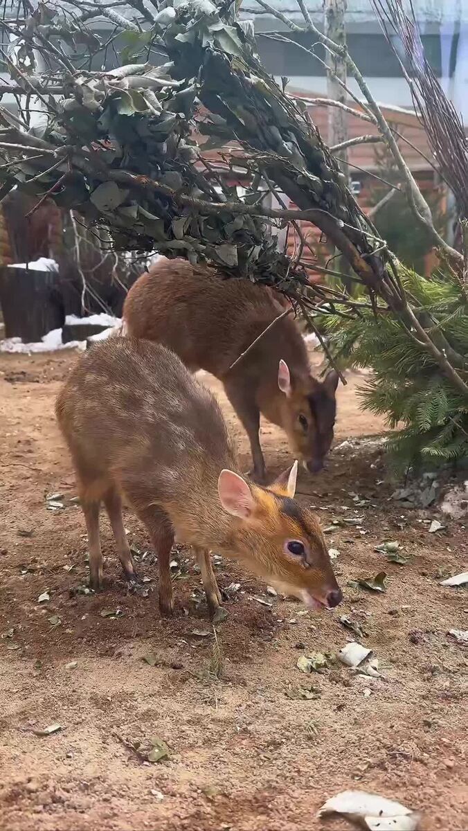 Пара китайских оленей Артур и Офелия из Ленинградского зоопарка стали родителями. 22 января у мунтжаков родился детеныш - девочка, поделились в пресс-службе учреждения.