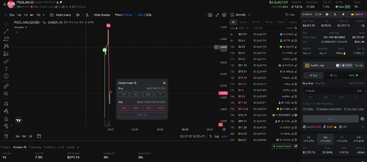 Самый удобный терминал GMGN для торгволи мемкоинами на Солана часто получает негативные отзывы о высоких комиссиях или даже воровстве денег с баланса при транзакциях. Подписывайтесь на мой Телеграм канал про крипто и DEX-трейдинг — https://t.me/wedosidehustle. Платные и бесплатные инструменты, кошельки и лучшие KOL для копирования. В документации в разделе GMGN FEES указано, что платформа берет 1% комиссии за транзакцию. Так ли это на самом деле? Сразу скажу, что PNL кошелька или сделок внутри GMGN не верный, он не учитывает комиссии. Нужно считать самостоятельно. Давайте разберемся. Считать будем для сети Solana, при покупке токена на PUMP.FUN (через GMGN). Итого мы получаем 2% на покупку + 2% на продажу = полный круг сделки встает нам в 4% от суммы. Сюда добавляем Solana FEE, Solana Priority Fee. Таким образом, ордер — покупка токена на 1 SOL может быть исполнен по цене 1.2 SOL, где вы заплатите комиссию на 1.2 SOL. Вы ожидаете: -1 SOL - 4% = -1.004
