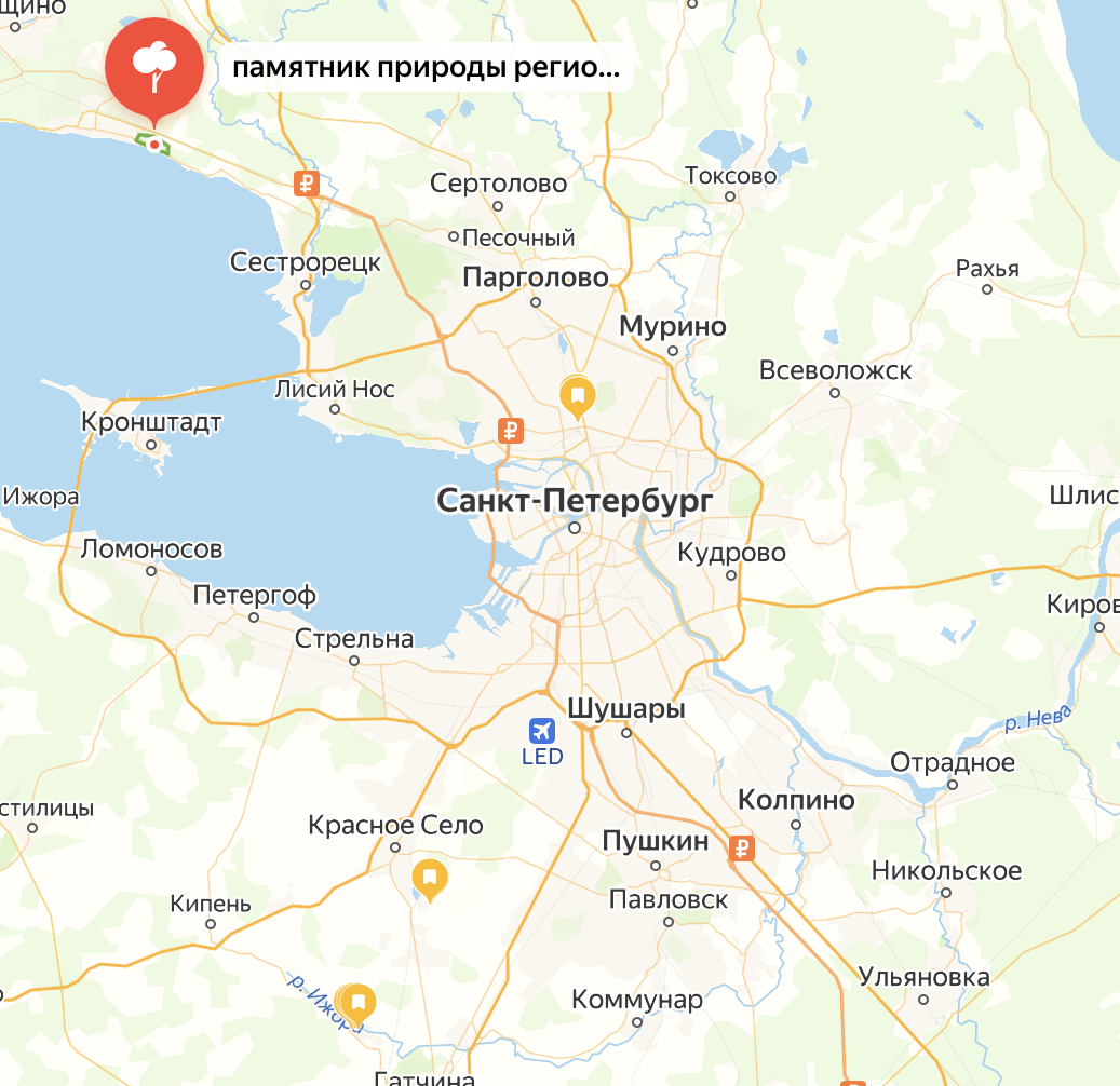 У ООПТ есть выход к заливу. На обычных картах это не везде отмечено, но на официальном сайте Дирекции ООПТ Санкт-Петербурга береговая линия в границах всё-таки присутствует.
