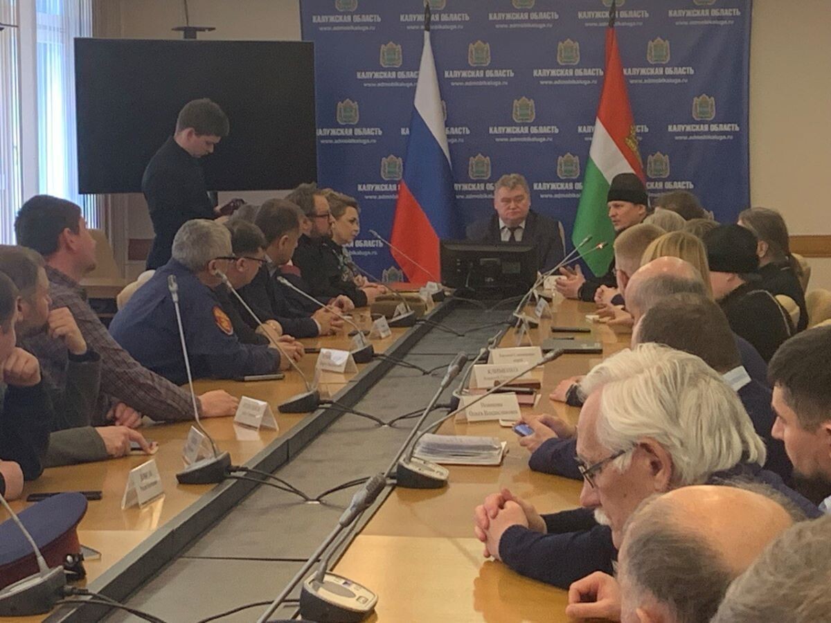 У министра внутренней политики Калужской области Олега Калугина состоялось совещание по поводу нашумевшего мурала на улице Ленина в Калуге, где 3,5 года спустя после его размещения заметили, что на изображенном храме "нет крестов". На самом деле они там есть, но повернуты "в профиль". Однако православная общественность все равно выразила недовольство. В совещании приняли участие представители Калужской митрополии во главе епископом Тарусским Макарием (Комогоровым) и общественности, включая казаков. От епархии выступил отец Сергий Комаров, который сформулировал такую мысль, что изображение православного храма всегда должно быть с четко различимым крестом, и не важно, какой при этом ракурс. Потому что дело в символах. Он напомнил, что когда в детстве все рисовали Кремль, то всегда на нем рисовали четко различимую пятиконечную звезду, и неважно, какой был при этом ракурс. "Это Кремль, это символ... Если мы именно с этой точки зрения рассматриваем вопрос, а ведь именно главные символы Калу