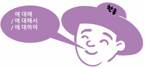 ~에 대해(서) Указывает на тему, к которой относится действие (глаголы: говорить, думать).