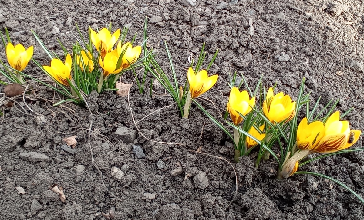 Здравствуйте, дорогие мои подписчики и гости канала! Переходы нашей весны скоротечны. Ещё 12 дней назад по ночам стояли двадцатиградусные морозы, а сейчас - днем на солнце шкала термометра краснеет в районе +20 градусов. Из ранней снежной она быстро перешла в серо - пыльное и мокрое одновременно, нуждающееся в уборке, мытье, ремонте, обрезании, опрыскивании.... Только соберешься расстроиться, глядя на эти ранневесенние картины, а тебе уже крокусы разноцветно улыбаются. Целая полянка! Ничего не делают - просто сидят, молчат, солнечный свет собой излучают. И нежнейшая капелька пролески, пробившаяся сквозь едва оттаявшую почву, благоденствуя, призывает небесный экран сбросить уже эти серые зимние настройки и окраситься в яркие оттенки голубого фарфора. Ну и как тут расстроиться? Смотришь на них, умиляешься, размягчаешься и все вокруг сразу свежеет, голубеет, преображается. Все - таки, умеет эта трогательная простота управлять нами! Сад, по прежнему, напоминает палаточный городок. Розы, к