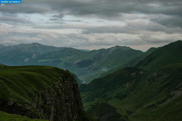 Отсюда начинается спуск к Млету, который виднеется где-то далеко на дне ущелья почти на одной с нами вертикали. Нам говорили, что тропинка в Гудское ущелье начинается на одиннадцатом повороте после перевала. Попробуйте, однако, сосчитать, где там одиннадцатый поворот в этом горном лабиринте! Несмотря па тщательное описание путешествия в этих местах Лермонтова Ираклием Андронниковым, на киносъемки его разысканий для фильма «Загадка НФИ», дух старого Гуда - покровителя ущелья – «попутал» нас, и мы доехали до самого Млета, так и не заметив нужного нам спуска в Гудское ущелье.