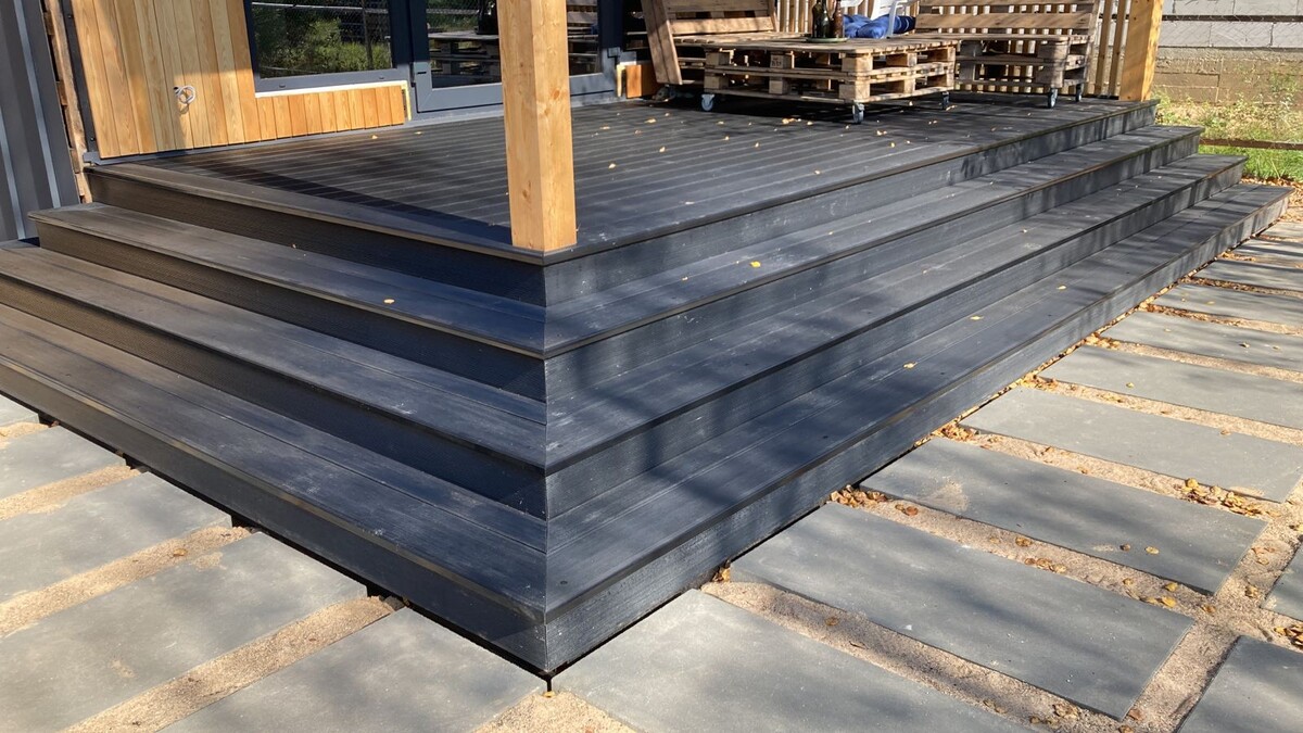 ✔ Цельный, эстетичный вид – нет лишних деталей, конструкция выглядит аккуратно 2. Устойчивость к погодным условиям Ступени из МПК не боятся: