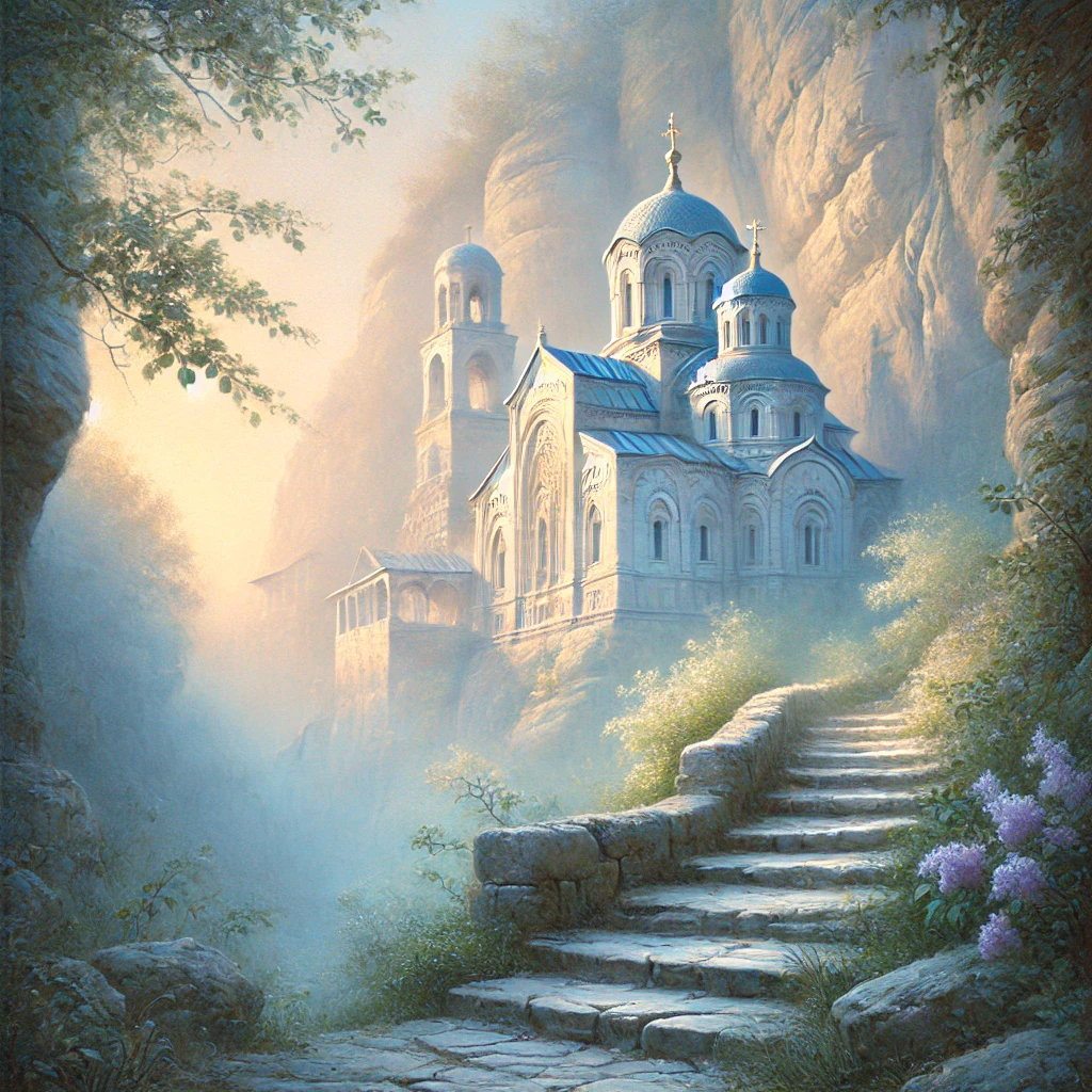 Глава 1: Картина, что ведёт к истине Лея бродила по залам Ханского дворца, погружённая в мысли. История здесь витала в воздухе — в шелесте ковров, в узорах на стенах, в тенях, что отбрасывали своды дворца. Но сегодня её внимание привлекло нечто особенное. В одном из залов, где обычно мало кто задерживался, висела картина. На ней был изображён монастырь, высеченный в скале, окутанный лёгким туманом. Внизу, среди древних букв, виднелась почти стёртая надпись: «Один из монахов всегда знает всё о стихиях». Лея замерла. Слова вспыхнули в её памяти, перекликаясь с теми, что она когда-то читала в дедушкином дневнике: «Тот, кто владеет водой, должен найти того, кто несёт её тайну». Она инстинктивно коснулась кулона стихии воды, что висел на её шее. Теперь было ясно, куда нужно идти. Глава 2: Дорога в монастырь Тропа вела через ущелье Марьям-Дере, скрытое между скалами. Здесь, среди древних троп, пахло пылью, нагретой солнцем, травами и временем. Свято-Успенский монастырь, основа