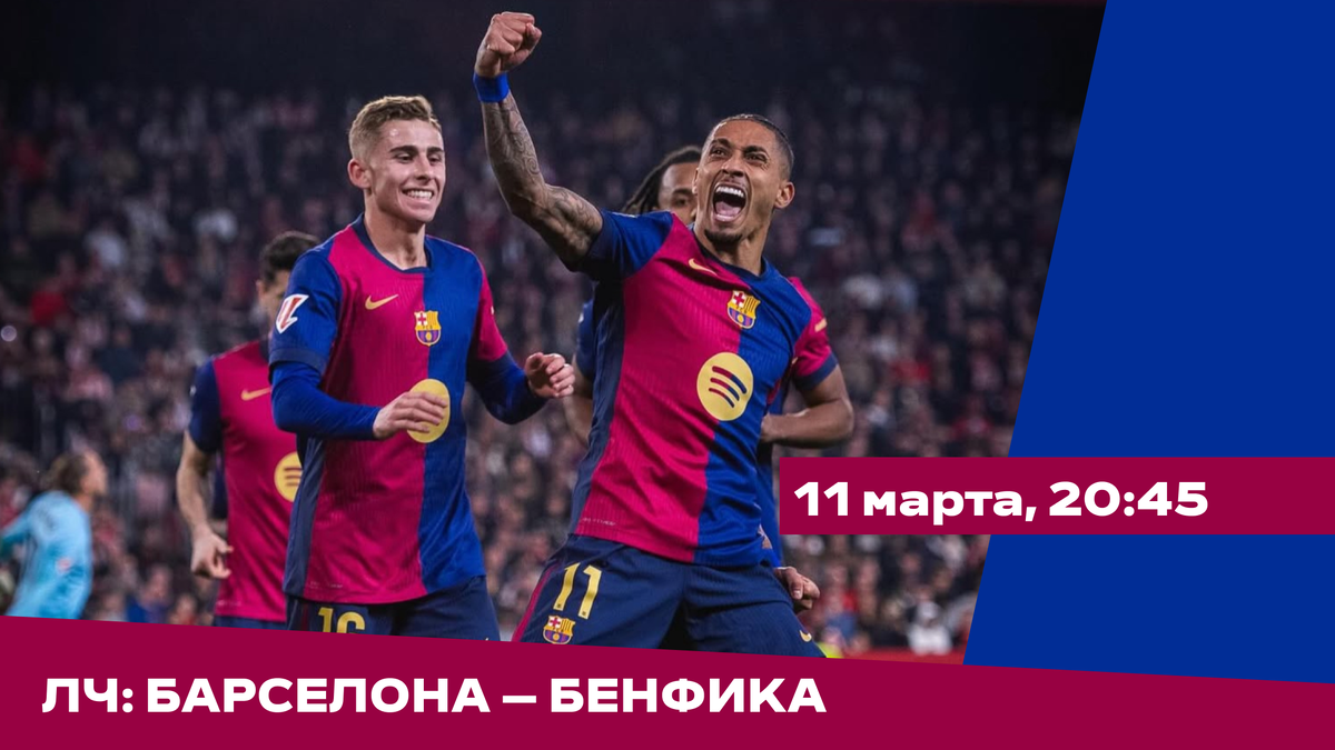 Во вторник, 11 марта, состоится ответный матч 1/8 Лиги чемпионов между «Барселоной» и «Бенфикой». Встреча пройдёт в одноимённом городе на стадионе «Олимпик Льюис Компанис» в 20:45 по московскому времени. Ее трансляция будет доступна в онлайн-сервисе Okko. Обзор первого матча До начала встречи казалось, что ход игры мог пойти по примерно такому же сценарию, когда команды забили друг другу в общей сложности девять мячей (4:5), а по итогу победила «Барселона». В начале встречи всё шло примерно так же, но с меньшими скоростями. Всё же право на ошибку здесь было выше. Команды обменялись явными голевыми моментами в начале встречи, но отличную игру показали вратари Шченсны и Трубин. Встреча проходила с преимуществом «Барселоны, а также опасными контратаками португальцев. Но на 22 минуте у «каталонцев» удалился Кубарси за фол последней надежды на Павлидисе. Дальше, конечно, перевес сил был на стороне «орлов». «Бенфика» имела большое преимущество, но отличный матч выдал Шченсны. Конечно, не вс