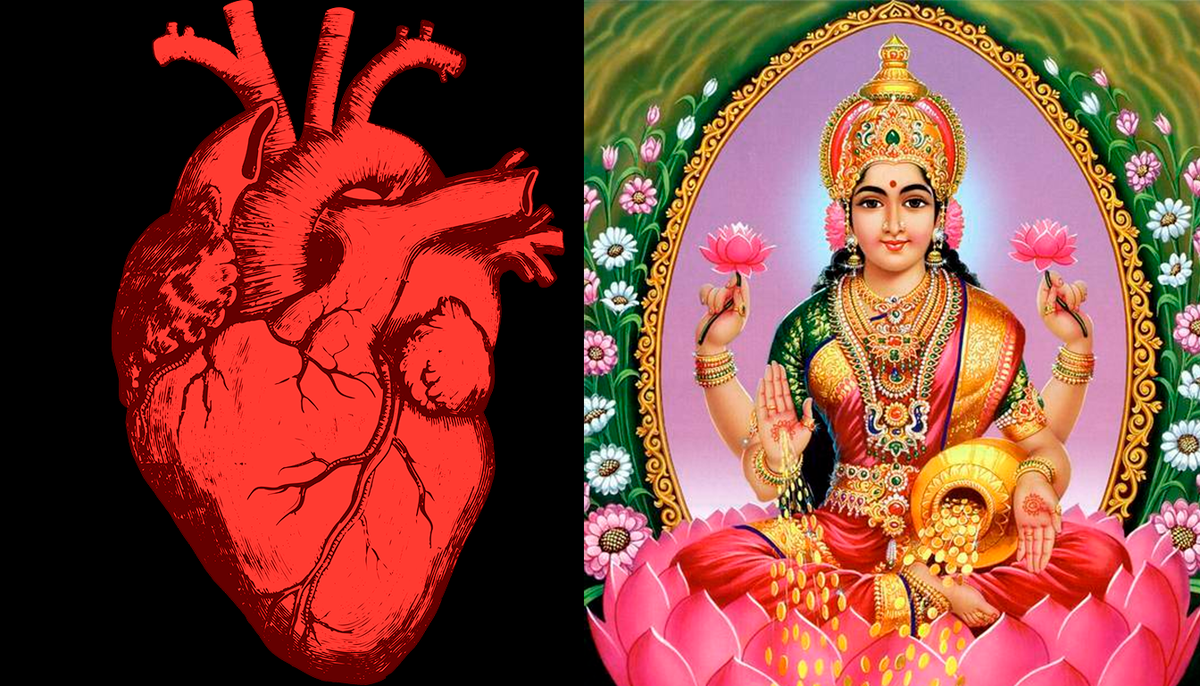 Большой вклад в развитие медицинской астрологии внес доктор Тони Нейдер, подробно и научно сопоставив человеческую биологию с космической природой. По выведенной им аналогии все ведические божества являются олицетворением различных органов организма. Сегодня мы поговорим о Лакшми и о том, что она олицетворяет в теле человека. Лакшми - богиня богатства, здоровья и питательной силы. Также ее называют божественной матерью, поскольку только она умеет так безусловно любить и служить, отдавая всю себя без устали. В иконографии Лакшми изображается сидящей или стоящей на цветке лотоса. У нее золотистая кожа и четыре руки. Ее появление описано в мифе о пахтании молочного океана. Лакшми родилась из вод с лотосом в руках (или сидя на лотосе). Согласно книги Тони Нейдера Божественная Мать Лакшми, находится в груди, а ее местопребыванием является сердце. Ее 4 руки символизируют 4 камеры сердца. Сердце находится в зоне 4 энергетического центра, которую называют «сердечной чакрой» и связывают с таки