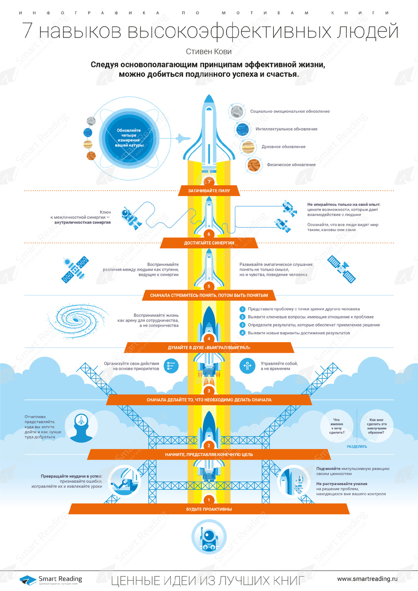Иногда нам всем нужно вдохновение — будь то для новых свершений, перемен в жизни или просто для того, чтобы взглянуть на мир под другим углом. Книги — это один из самых мощных источников мотивации. Они могут стать вашим проводником в мир новых идей, помочь найти ответы на сложные вопросы и вдохновить на большие цели. Сегодня я хочу поделиться подборкой книг, которые зарядят вас энергией и помогут поверить в себя. Это не просто книги, а настоящие источники вдохновения, которые стоит прочитать каждому, кто хочет расти и развиваться. Эта книга — классика жанра саморазвития. Кови предлагает системный подход к личностному росту, основанный на принципах ответственности, целеустремленности и баланса. Если вы хотите научиться управлять своей жизнью и достигать целей, эта книга станет вашим надежным помощником. Она учит не только ставить цели, но и выстраивать гармоничные отношения с окружающими. "Начните с конца в уме. Если вы знаете, куда идете, вы сможете лучше понять, где находитесь сейчас.