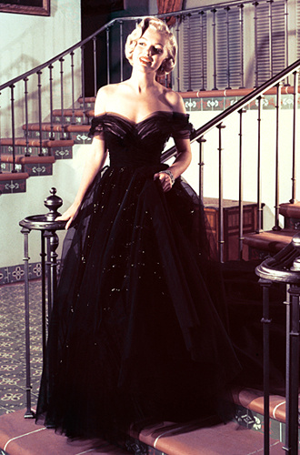 В 1951 года Мэрилин Монро появилась в пышном черном платье от Чарльза ЛеМейра, который одевал труппу фильма "Все о Еве". Актриса сыграла в нем одну из главных ролей, а сам фильм получил шесть статуэток. Дива выбрала платье, которое изначально принадлежало другой актрисе - за несколько месяцев до Оскара в фильме "Дом на телеграфном холме" в таком же наряде была замечена героиня Валентины Кортезе. Однако Монро это не смутило - накинув поверх платья меховое манто, она грациозно прошла к театру Пантаж, где от нее никто не смог оторвать глаз.