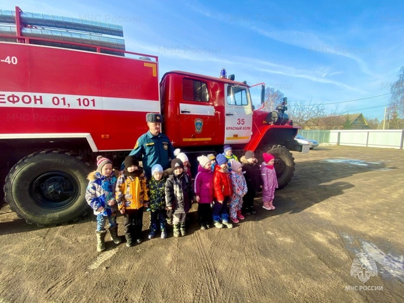 Сотрудники пожарно-спасательной части № 35 города Красный Холм провели экскурсию для воспитанников детского сада № 2 "Солнышко", где рассказали об основных правилах пожарной безопасности. Огнеборцы показали пожарно-спасательное оборудование, спецтехнику, экипировку и рассказали о профессии пожарных. Подрастающему поколению была представлена возможность испытать на себе всю тяжесть обмундирования огнеборца, примерив боевую одежду.