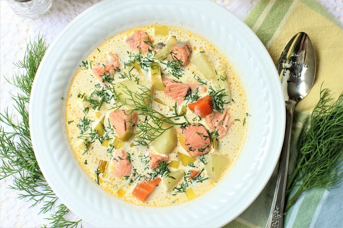 - Сырный суп с горбушей и овощами: добавьте в суп другие овощи (брокколи, цветную капусту, морскую капусту).