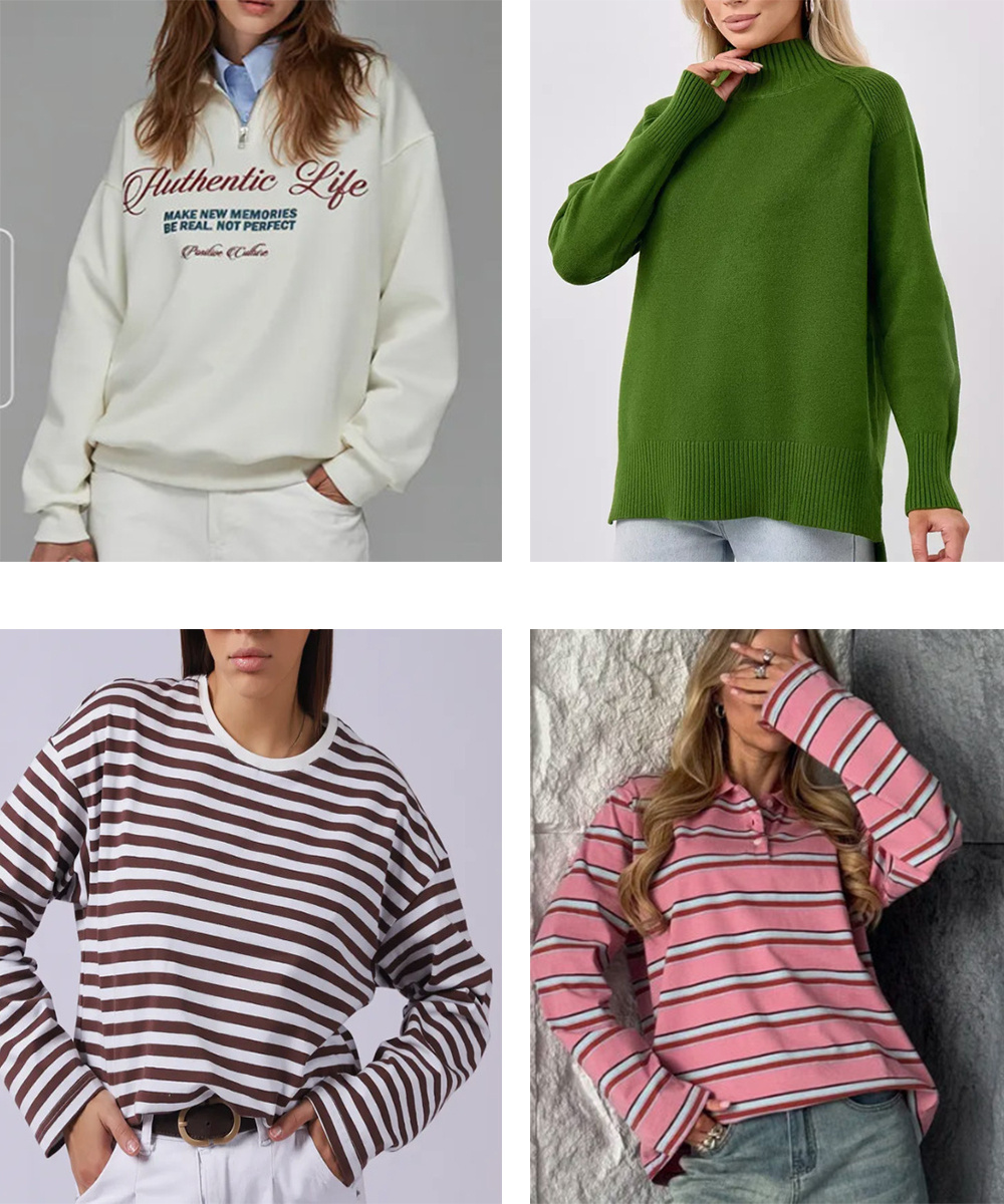 У меня сегодня для вас капсула с несколькими отсылками к Miu Miu. Однако, и без намеков на люкс, образы, которые можно создать из вещей, входящих в этот гардероб, выглядят стильно, модно и очень гармонично. Вещей здесь совсем немного, но благодаря грамотному подбору, они позволяют выглядеть очень по-разному и закрыть все гардеробные задачи примерно до середины весны, да и потом многие из них вам пригодятся, когда потеплеет. все выбрано на ВБ и показано с артикулами. Верхи Напомню, что разнообразие образов достигается за счет верхов. Я захотела капсулу без вторых слоев, поэтому верхов 4 - на разную погоду и настроение. Артикулы и пояснение, почему здесь та или иная вещь: Свитшот 246911966 - это вещь, которая классно смотрится не только с джинсами, а и классическими брюками и даже юбками. Также этот хорош тем, что есть молния на воротнике - можно надеть под низ контрастную футболку, например, коричневую или бирюзовую и расстегнуть молнию и сделать образ интереснее за счет многослойно