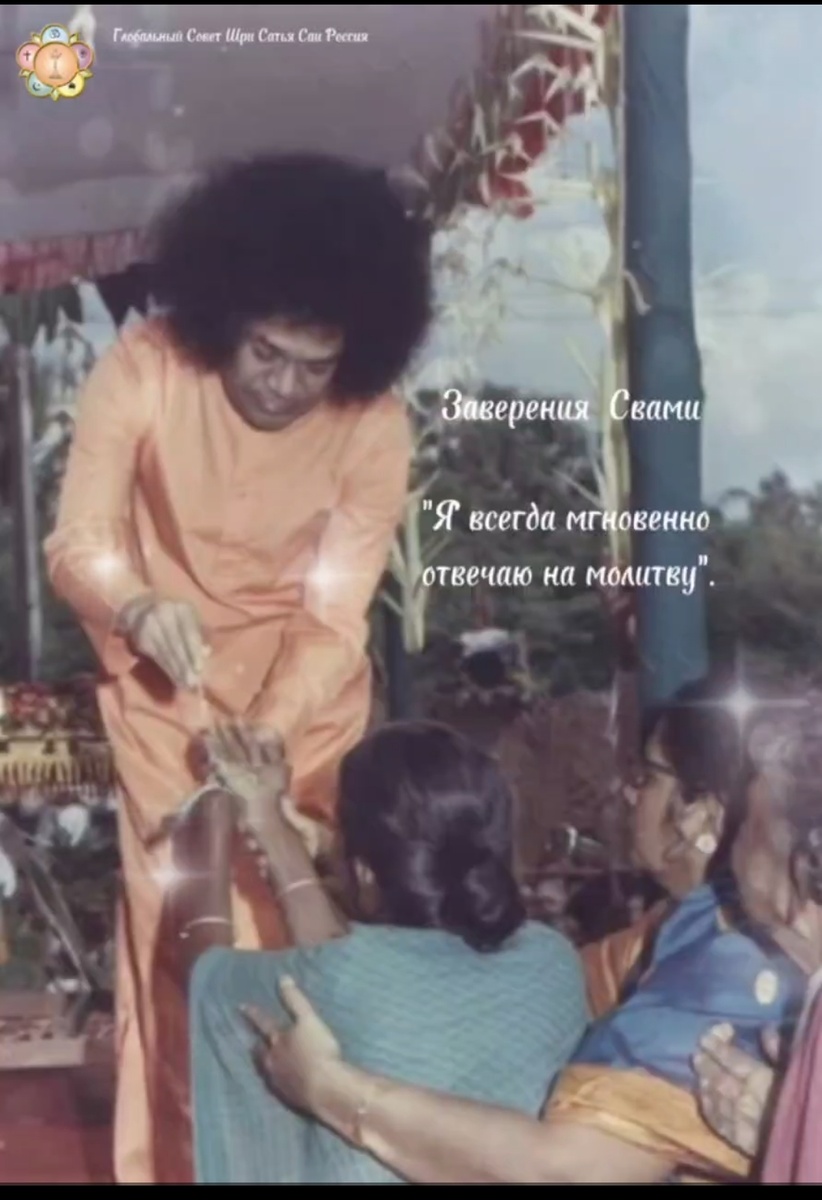 "40 заверений Свами", составитель Анил Кумар. Сатья Саи Баба. Ом Саи Рам 🙏 Заверения Свами своим преданным Давайте начнём эту неделю с воодушевляющего послания нашего Возлюбленного Бхагавана всем нам и каждому в отдельности: "Я всегда мгновенно отвечаю на молитву". #5 из "40 Заверений Свами своим преданным" - составитель профессор Анил Кумар, из книги д-ра В. Мохана "Вечная Божественная Благодать" Перевод на русский: ГСШСС Россия