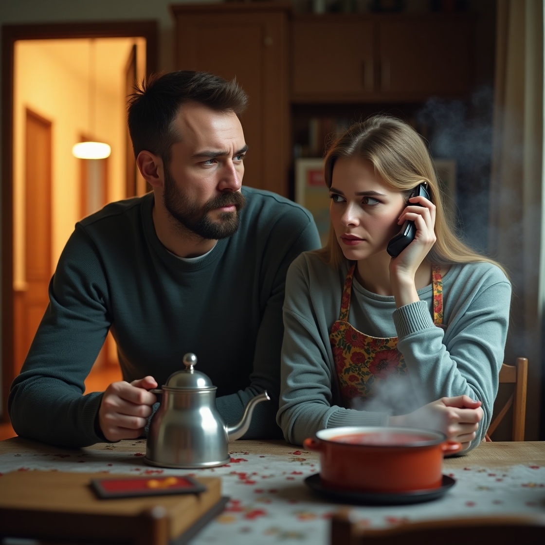 Чайник стоял на столе, гудя, как в первые годы. Дима и Оля ели борщ, смеясь, как раньше. Саша звонил, но Дима не брал трубку. "Она моя," — думал он, чувствуя тепло её рук.