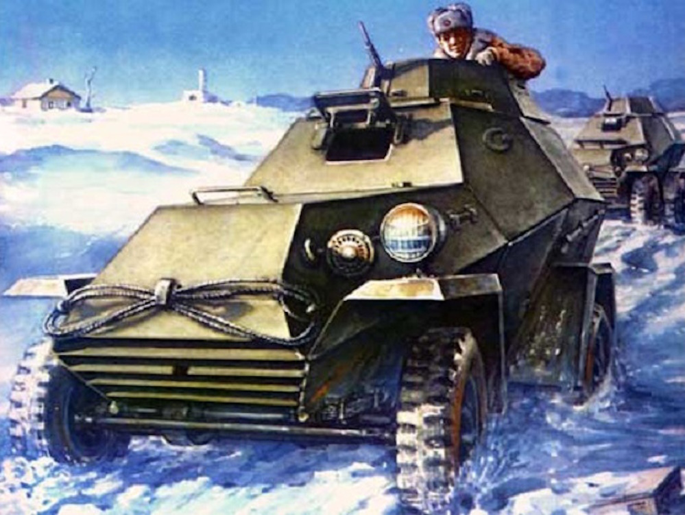 Тут надо отметить, что в ходе войны к бронеавтомобилям присоединились ещё и бронетранспортёры, разумеется не свои, а лендлизовские. И получаемые британские и канадские «Универсалы» использовались как разведывательные бронемашины, хотя умудрялись и перевозить по 8 человек (машина предусмотрена на 3-4 человека) в качестве транспортного средства на поле боя. Но позже в те же подразделения поступали американские «Скауты», которые уже больше использовались именно как средство транспортировки стрелков (хотя и как разведывательные бронемашины тоже).