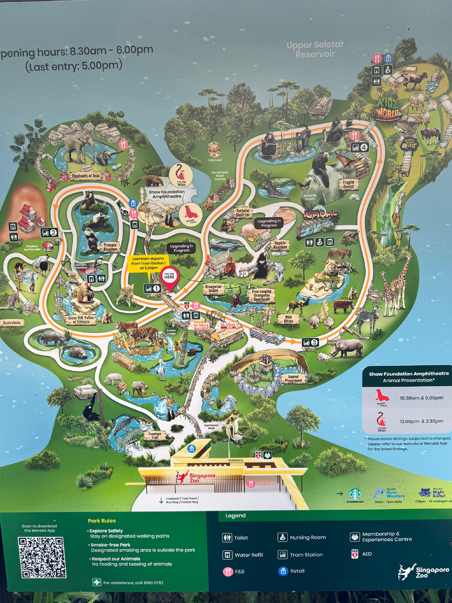 Итак, продолжаю экскурсию по Сингапуру. После первого, физически очень насыщенного дня, следующим пунктом нашего плана стал Сингапурский зоопарк. Вообще, я не люблю места, где животных держат в неволе, но этот зоопарк — исключение. Здесь животные содержатся в условиях, максимально приближенных к их естественной среде обитания, и живут не в клетках. Зоопарк разделен на две части: собственно зоопарк и парк птиц. Мы решили ограничиться только зверюшками. Если хотите посетить обе зоны, выгоднее покупать комбинированные билеты. Стоимость билета только в зоопарк — 36–40 сингапурских долларов (примерно 26,7–30,8 USD). Курс на тот момент был 1,3 SGD к 1 USD.