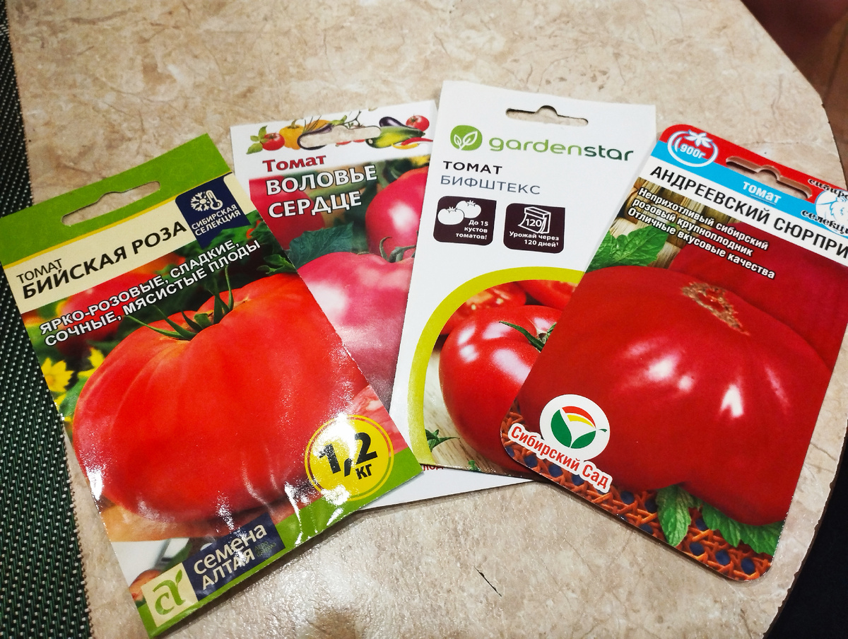 Приветствую вас на своём канале! Сегодня я хочу поделиться своим опытом по выращиванию томатов на рассаду и показать, как я это делаю. Выращивание томатов — это очень увлекательное занятие. Мне кажется, что у этой культуры самое большое разнообразие сортов и гибридов. Кроме того, рассада томатов может использоваться для прививки баклажан и перцев. Давайте начнём с выбора сортов. Сейчас существует огромное множество вариантов. Некоторые из них хорошо подходят для консервации, другие лучше употреблять в свежем виде. Также есть сорта для ранней и поздней посадки, так что можно подобрать сорт на любой вкус. В этом году я решил попробовать следующие сорта: Бийская роза. Этот низкорослый сорт томатов отличается среднеранним сроком созревания — 106–110 дней. Его плоды обладают привлекательным внешним видом, сладким вкусом и приятным ароматом. Кроме того, в них содержится небольшое количество семян и множество полезных веществ. Цвет томатов — розовый, а вес может варьироваться от 250 до 600 г