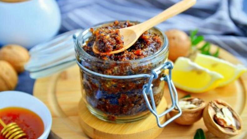 Привет, друзья! Сегодня мы поделимся уникальным рецептом витаминной пасты Амосова, которая станет отличным дополнением к вашему рациону. Эта паста, созданная академиком Амосовым, содержит множество витаминов и минералов, необходимых для поддержания здоровья и иммунитета. Пасту можно есть как самостоятельное блюдо или добавлять в каши, творог или йогурт. Приготовьте эту вкусную и полезную пасту дома и наслаждайтесь её пользой! 1. Промойте сухофрукты тёплой водой и обсушите бумажными полотенцами. 2. Измельчите сухофрукты через мясорубку. 3. Подсушите грецкие орехи на сковороде до золотистого цвета и измельчите их через мясорубку. 4. Нарежьте лимон ломтиками и измельчите его через мясорубку. 5. Добавьте мёд и перемешайте до однородной массы. Паста Амосова готова!