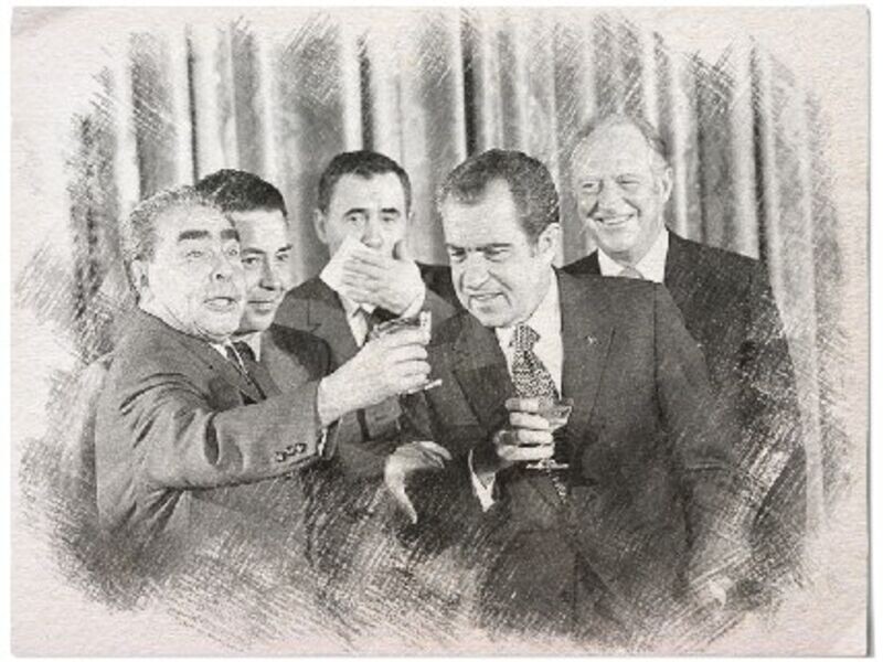 К: Посмотри, как Никсон обнаглел. Бомбит и бомбит Вьетнам, всё сильнее, Сволочь. Слушай, Лёнь, может быть нам и его визит отложить?