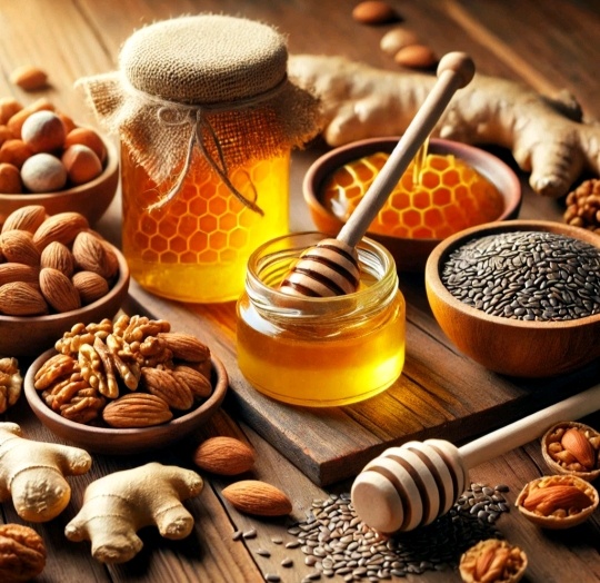 В современном мире важно поддерживать силы, здоровье и жизненную энергию. Для этого не обязательно прибегать к сложным схемам питания — достаточно включить в рацион несколько полезных продуктов. Орехи и семена, особенно грецкие, миндаль, тыквенные и льняные, содержат витамины группы B, магний и цинк. Эти элементы помогают организму бороться со стрессом, поддерживают иммунитет и способствуют выработке тестостерона, влияя на либидо. Мед — природный источник энергии. Он богат ферментами, антиоксидантами и натуральными сахарами, которые быстро восполняют силы. Прополис и пчелиная пыльца также укрепляют иммунитет, помогая организму противостоять инфекциям. Имбирь улучшает кровообращение, согревает и бодрит. Он также обладает антибактериальными свойствами и поддерживает иммунную систему. К тому же имбирь традиционно считается природным афродизиаком, который может положительно сказаться на либидо. Включив эти продукты в рацион, ты заметишь улучшение самочувствия, станешь энергичнее и укре