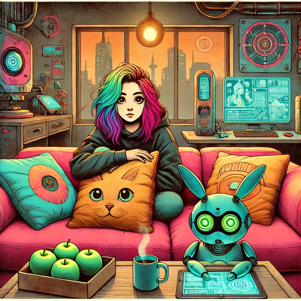 Мари жила в обычном двадцати пятиэтажном доме на окраине мегаполиса, в уютной студии, из которой не выходила месяцами. Выходить незачем, все под рукой – еда в контейнерах, ее регулярно приносила доставка «Дед мороз». Мари иногда готовила и сама, сейчас она задумала испечь шарлотку и ждала Тома, который отправился за зелеными кислыми яблоками. Удаленная работа также не способствовала прогулкам, Мари трудилась загрузчиком - помогала писателям форматировать текст и выгружать его вместе с обложкой на сайт продаж. Спорт тоже в домашней обстановке, Мари занималась йогой с роботом по имени Юка и осваивала скалолазание, полазала по виртуальным скалам. Арсенал развлечений она скачивала каждую неделю. Например, сейчас она занималась воссозданием своей семьи.