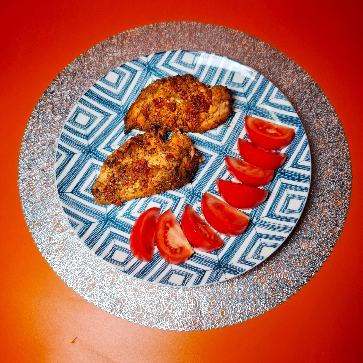 Пока снимала - запеклась курочка. Ее я съела позже, уже совсем ночью. Не знаю, что пошло не так - курица вышла как подошва. Вот реально. Все делала по тому же сценарию, как и обычно - но использовала соевый соус из Фикс прайса. Могло ли это дать такой эффект?