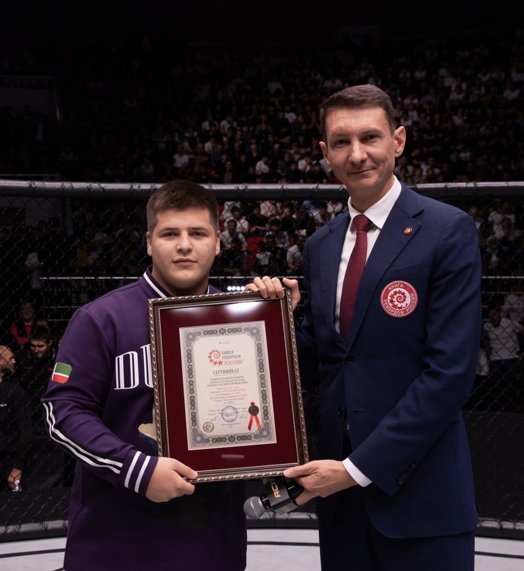 Шестнадцатилетний Адам Кадыров, сын руководителя Чеченской Республики Рамзана Кадырова, вошел в Книгу рекордов России как наиболее молодой руководитель службы безопасности главы субъекта Российской Федерации. Адам Кадыров занял ответственный пост в охране главы Чечни в возрасте пятнадцати лет. В то время спикер регионального парламента Магомед Даудов отметил, что его родственник обладает сильным и принципиальным характером и "на деле показал и доказал, что является достойнейшим представителем великого рода Кадыровых и всего чеченского народа". Через три недели Адам Кадыров стал куратором батальона имени Шейха Мансура. Депутат Государственной Думы Адам Делимханов подчеркнул, что вступление в эту должность стало "закономерным результатом значительных заслуг Адама". Официальная церемония вручения сертификата Книги рекордов России состоялась 5 октября 2024 года во время проведения турнира АСА 180 по смешанным единоборствам (ММА). САМЫЙ МОЛОДОЙ НАЧАЛЬНИК СЛУЖБЫ БЕЗОПАСНОСТИ ГЛАВЫ СУБЪЕКТА
