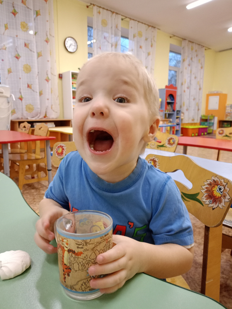 Побыл в моей группе до восьми, поставил на уши двух мальчишек, которых привели в 7:30, гонялся за ними по всей группе. Ему, конечно, интереснее со старшими, к малышне он и не хотел идти..