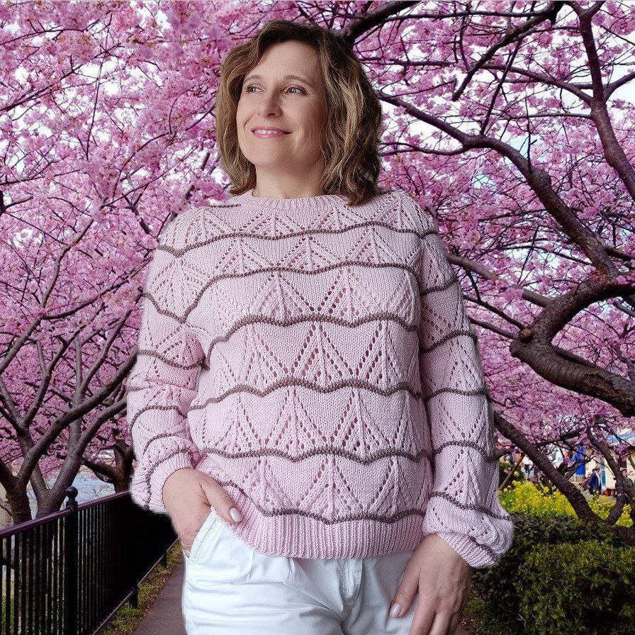 1.И начинает наш обзор весьма оригинальный джемпер «ПАРИЖ» на фоне сакуры. Почти уверена, что такой красавец не может не понравиться.