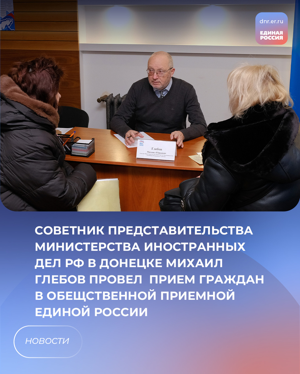 В региональной общественной приёмной Единой России провел приём граждан советник представительства Министерства иностранных дел РФ в Донецке Михаил Глебов. Одна из обратившихся – Виктория Александровна, которой нужна помощь в транспортировке праха ее дочери из Испании. Основная трудность заключается в том, что у дочери не было российского гражданства. Самостоятельное обращение в посольство РФ в Испании результатов не дало. Выслушав заявителя, советник подчеркнул, что подобные вопросы требуют координации с консульскими службами, таможенными органами и транспортными компаниями. Он заверил Викторию Александровну, что будет сделано все возможное для скорейшего решения проблемы и возвращения праха дочери на Родину. «Мы всегда открыты к диалогу с гражданами и оказываем максимальное содействие в урегулировании волнующих их вопросов. Каждый случай индивидуален и требует деликатного подхода. Наша задача – максимально поддержать в трудный момент», – отметил Михаил Глебов. #ЕРДНР #ПриемЕР #Единая