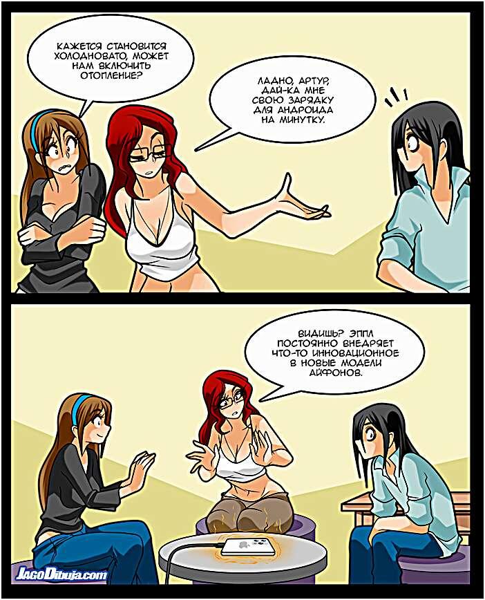 Комиксы с героинями известного карикатуриста Джона Александра Герра Диас (более известен любителям его творчества как JAGODIBUJA) всегда находят своих читателей. В его зарисовках очень много фансервиса. Девушки героини щеголяют в откровенных нарядах, в этих комиксах много иронии, бывает чёрный юмор, бытовые темы. Рисовка в стиле японских мультиков - аниме, что позволяет качественно передать эмоции персонажей. Яркие краски, порой щекотливый, но понятный взрослый юмор. Неудивительно, что серия выходит уже больше 10-ти лет (с 2012 г.) Что ж, давайте же глянем зимние истории из данной вселенной. В этот раз вас ждёт подборка посвящённая гаджетам.