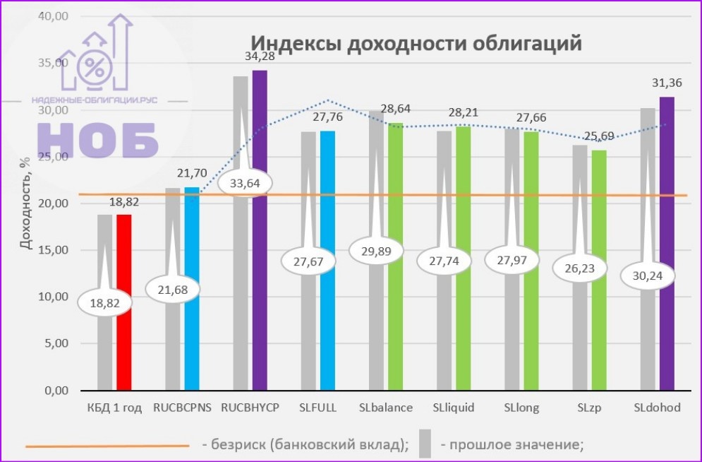 На сравнительном графике сильно бросается в глаза превышение доходности индекса RUSBHYCP, транслирует Мосбиржа, над SLdohod проекта надежные-облигации.рус. Хотя обычно было наоборот. Это говорит о приоритете для нас сокращения рисков над желанием получить максимальную доходность. Другими словами, когда первый эшелон размещается в доходностями до 25, а второй до 28-ми процентов, рассматривать ВДО в принципе не лучшее решение.