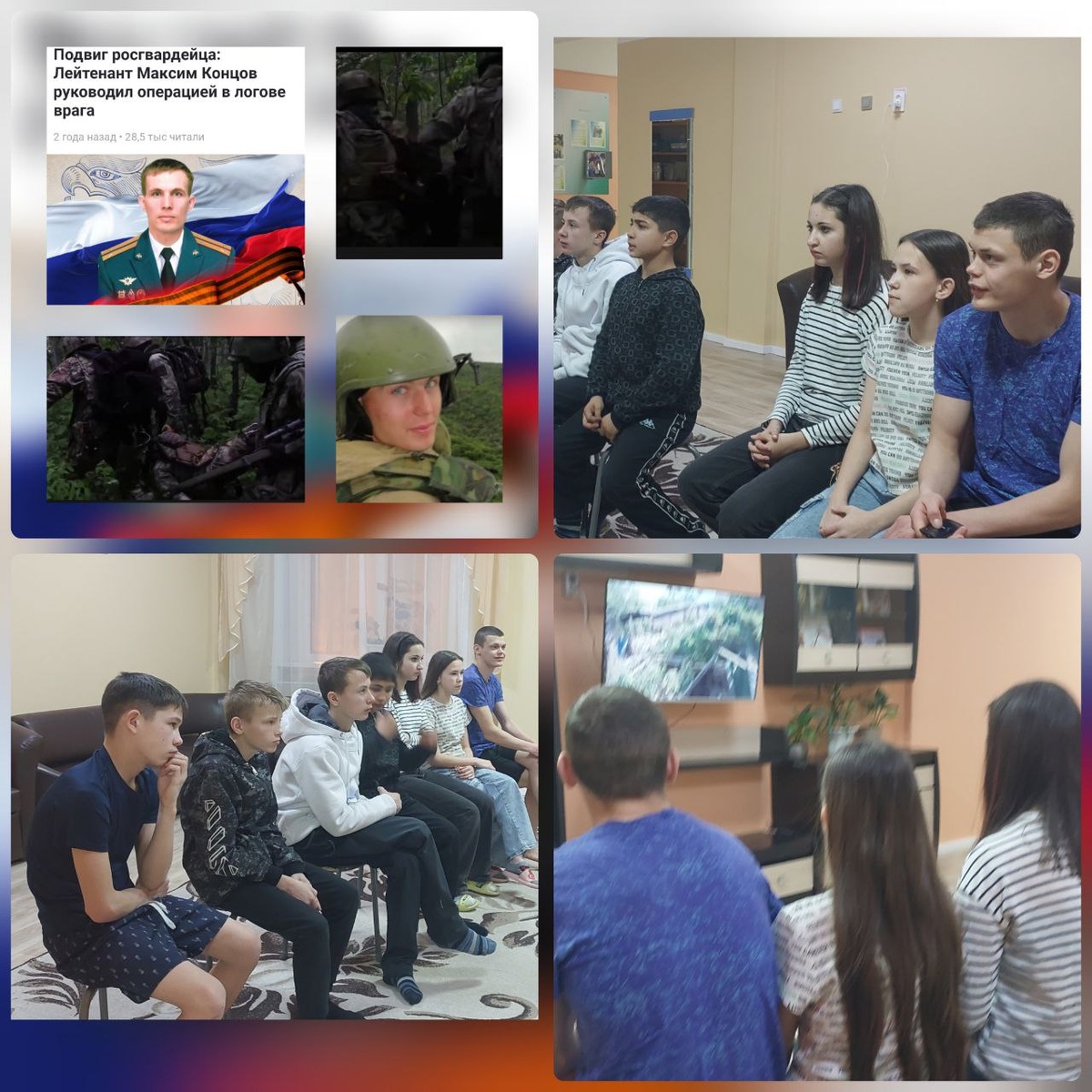 В преддверии Дня защитника Отечества ребята из Отряда министра "Горизонт" посмотрели документальный фильм "Один среди нас" об офицере спецназа ведомства лейтенанте Максиме Концове, героически погибшем при выполнении задач специальной военной операции на Украине. Большинство эпизодов документального проекта снято в условиях реальных боевых действий. Лейтенант Максим Концов погиб в бою с ДРГ противника, возглавляя разведгруппу спецназа Росгвардии. Он отвлек огонь на себя, чтобы спасти товарищей, подавил огневые точки националистов и, несмотря на множественные ранения, до последнего руководил подчиненными. За проявленное мужество и самоотверженность офицер был посмертно удостоен звания Героя России. Ребята с интересом просмотрели фильм и увидели на конкретном примере, что настоящие герои живут рядом, среди нас, что мужество, храбрость, любовь к Родине- это качество патриота и настоящего героя России.