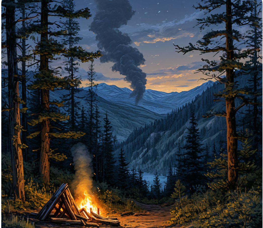 Через несколько минут таких манипуляций, дым в горах как будто бы пропал, но потом снова большим облаком поднялся над лесом, потом ещё и ещё.